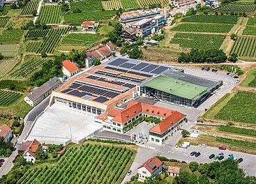 Ergänzt durch eine 377 kWp Photovoltaikanlage, den Anschluss an biogene Fernwärme und den vollständigen Ausstieg aus fossilen Energieträgern setzt Winzer Krems klare Zeichen für ökologisches Bauen.