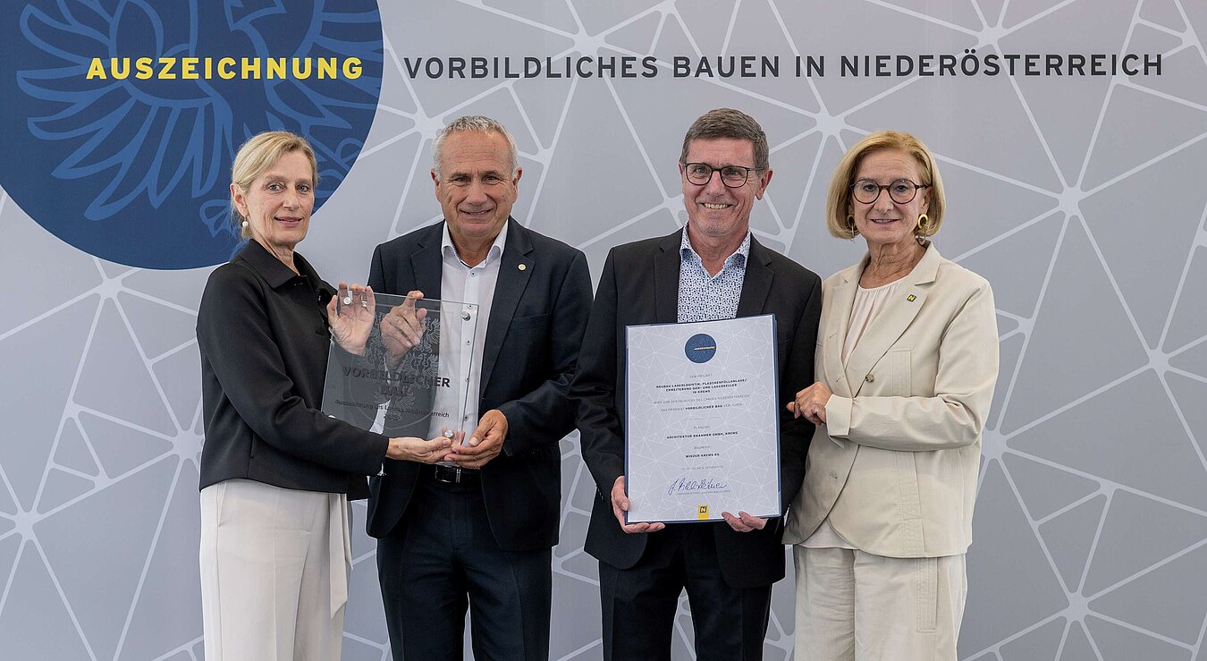 Für Winzer Krems gibt es ein erfreuliches Nachspiel zur Megainvestition, die über mehrere Jahre gestemmt wurde: der umfangreiche Neu- und Umbau in der Sandgrube 13 wurde mit einem Architekturpreis für vorbildliche Bauten des Landes Niederösterreich ausgezeichnet.