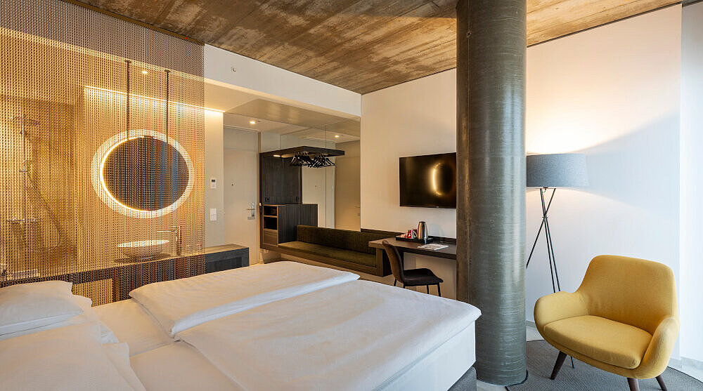 189 Zimmer und Suiten beherbergt das neue Arcotel Tabakfabrik Linz, eröffnet wird im April, Buchungen sind bereits möglich. © Arcotel