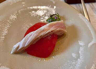 Die Präsentation der Gerichte am Teller kann puristischer nicht sein. Beilagen und Brot während des Essens sind verpönt, es wird nur einmal kurz gereicht und sofort wieder abserviert. Das Degustationsmenü (300 Euro) umfasst je nach Saison 12 bis 13 Gänge. Alle Gerichte sind auch á la carté bestellbar, mit Einzelpreisen zwischen 35 und stolzen 80 Euro. Das Beef Chop (Hochrippe) am Knochen wird nur mit dem happigen Kilopreis von 130 Euro ausgepreist und nach Gewicht verrechnet.