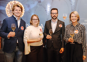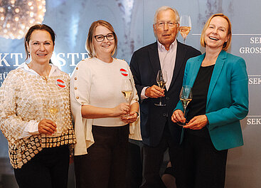 10 Jahre Erfolgsgeschichte (v.l.): Michael Malat, Winzer und Sekthersteller (Leiter Marketingausschuss Sekt-Austria-Komitee); Aurore Jeudy, Kellermeisterin Schlumberger, & Vorsitzende Sekt-Austria-Komitee; Georg Schullian, Österreich Wein Marketing; Dagmar Gross, Geschäftsführerin Sekt Austria. © Sekt Austria, Christine Miess