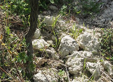 Die Lequio-Formation, ein Kalk-Mergel-Boden mit Lehm, Sand und eisenhaltigen Schichten ist typisch für den Barolo-Cru Vignarionda. © Peter Roggenhofer