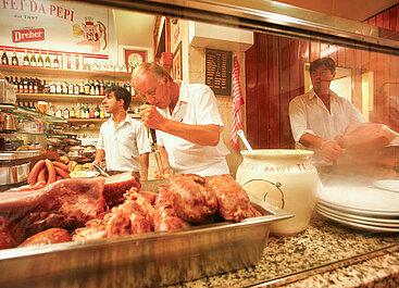 Das Buffet da Pepi in Triest serviert saftiges Fleisch aus dem Siedekessel. © Buffet da Pepi