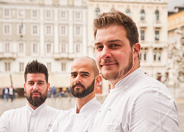 Harry’s Piccolo in Triest wurde mit zwei Michelin-Sternen belohnt. Federführend ist Küchenchef Matteo Metullio (r.). © Roberto Pastrovicchio