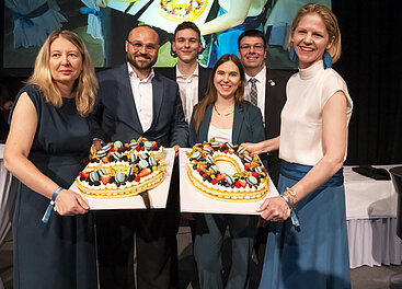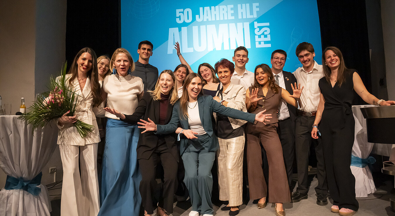 50 Jahre HLF – der Alumni-Vorstand (v.l.) Annemarie Maurer, Mark Bauer, Sebastian Haidl, Caroline Türk, Manuel Holzmüller, Christine Friedreich. © POV, Robert Herbst