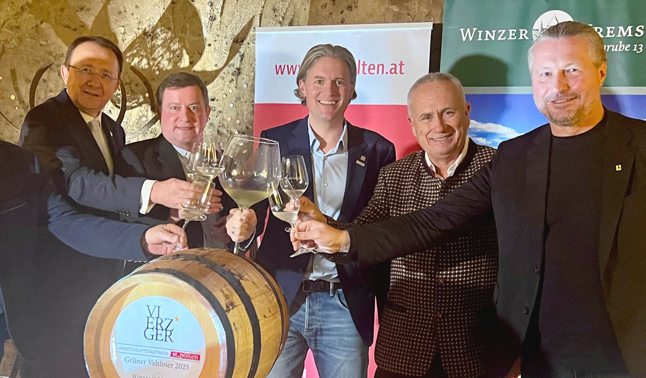 Winzer Krems liefert den offiziellen Hauptstadtwein für die Stadt St. Pölten im Jahr 2026. Anlässlich des 40jährigen Jubiläums als Landeshauptstadt Niederösterreichs wird der 2025 Grüner Veltliner Ried Goldberg „Vierzger“ heißen.