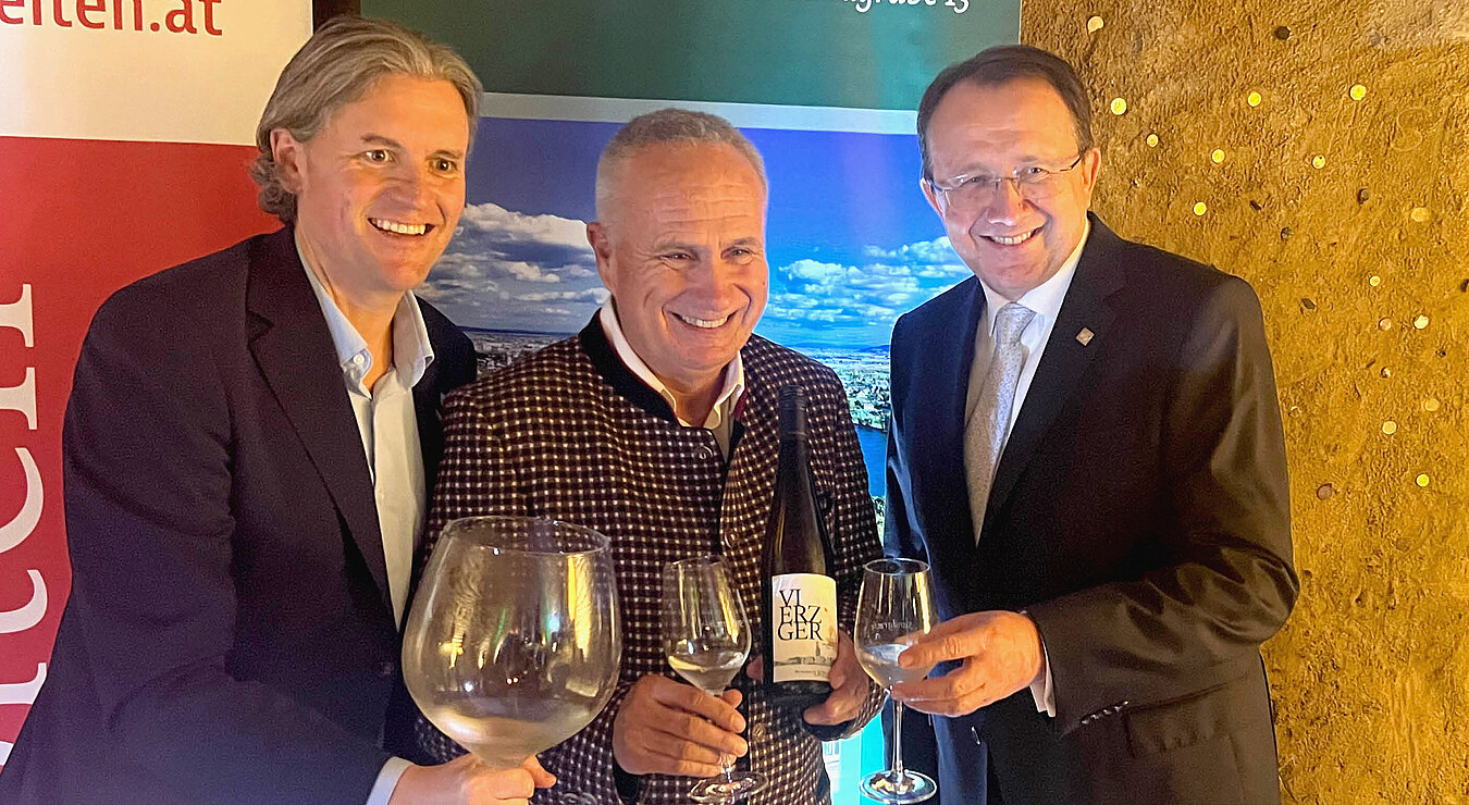 Pate des neuen Hauptstadtweins ist Dominik Mesner, Obmann der Wirtschaftsplattform St. Pölten. Bürgermeister Matthias Stadler hält die Tradition des jährlich wechselnden Stadtweins seit fast 20 Jahren hoch.