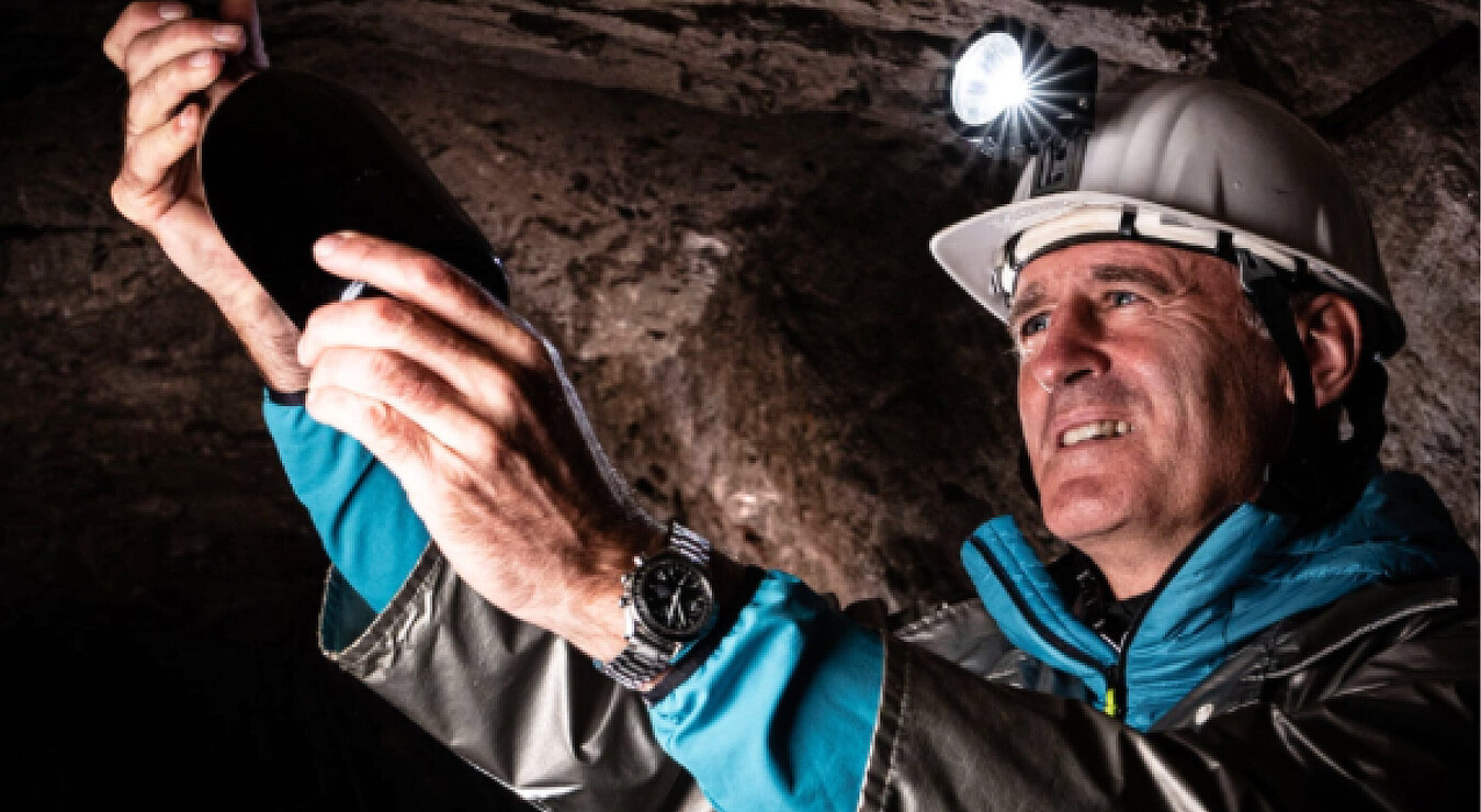 Nach der Gärung verbleibt der Wein einige Monate im Edelstahltank, ehe er zur langsamen Reifung in den höchsten Bergwerksstollen Europas eingebracht wird. Lediglich 2.150 Flaschen wurden vom aktuellen Jahrgang abgefüllt, jede einzelne davon ist jetzt schon ein Sammlerstück.