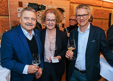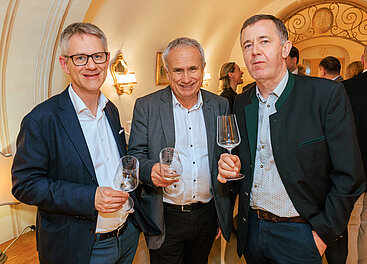 Otto Vogel (Smaragdverein), Spitzenwinzer Franz Hirtzberger, Österreichischer Weinbaupräsident Johannes Schmuckenschlager (v.l.). © LWmedia, Leadersnet_A. Felten