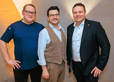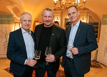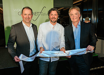 Das wachau GOURMETfestival ist eröffnet (v.l.): Donau Tourismus Zampano Bernhard Schröder, 2-Sterne-Chef Thomas Dorfer, Niederösterreich Werbung Geschäftsführer Michael Duscher. © LWmedia, Leadersnet_A. Felten