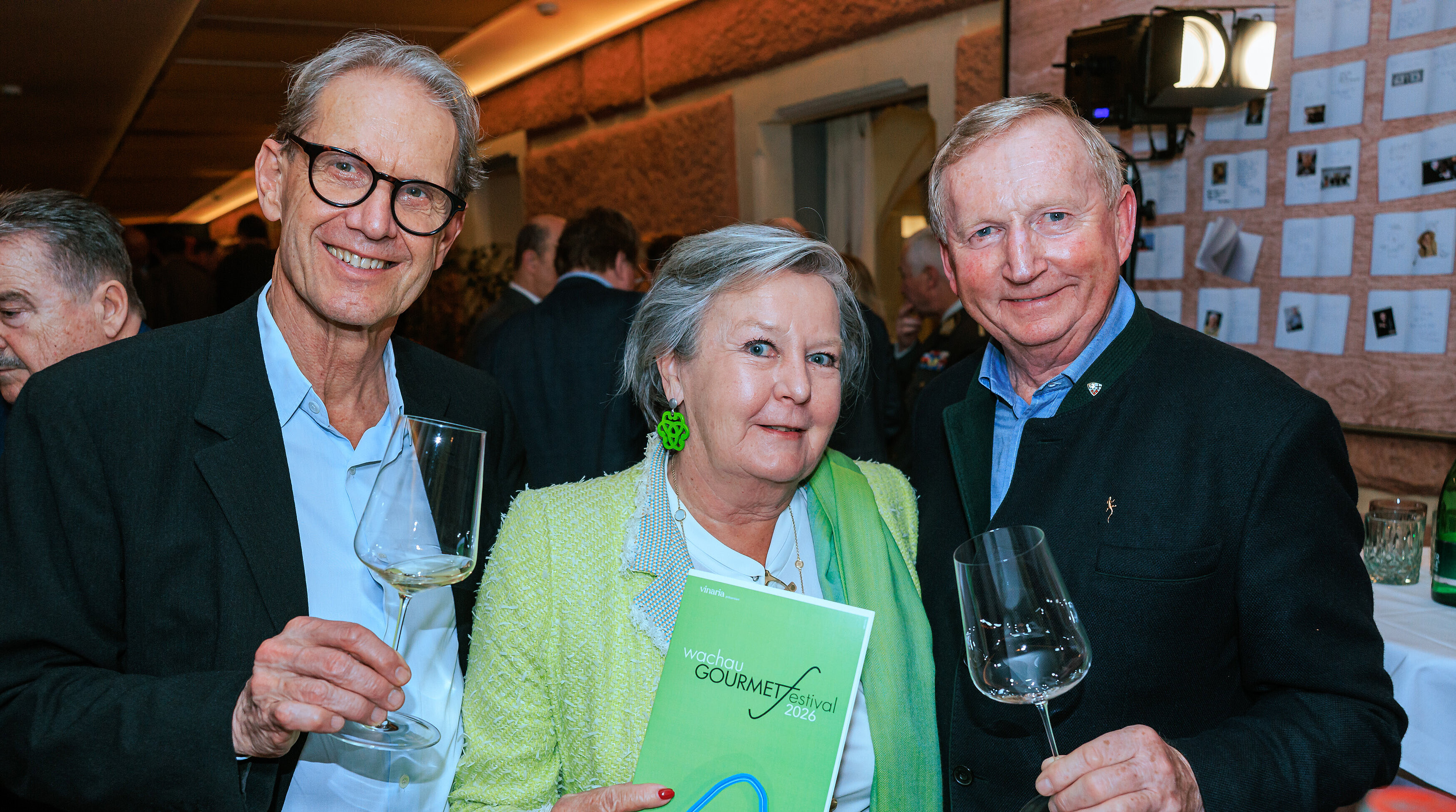 Am magischen Wachauer Kraftplatz, dem Wintergarten von Schloss Dürnstein unter vielen anderen mit dabei: Nationalsratspräsident Walter Rosenkranz, die NÖ Landesrätinnen Christiane Teschl-Hofmeister und Susanne Rosenkranz, Österreichs Weinbaupräsident Johannes Schmuckenschlager und Verbandsdirektor Josef Glatt, NÖ-Vizeweinbauchef Leopold Müller, NÖ Militärkommandant Georg Härtinger, NÖ Cheftouristiker Michael Duscher, die Grand Dame der Kulinarik und erster „Koch des Jahres“ (1988) Lisl Wagner Bacher und 2-Sterne- und 5 Hauben-Chef Thomas Dorfer. Weiters Schlossherr Christian Thiery, zahlreiche Topwinzer (die die Vinaria Weinbar ordentlich bestückten), darunter die beiden Vinaria Lebenswerk Preisträger Willi Bründlmayer und Franz Hirtzberger sowie die weiteren 5 Kronen Winzer Martin Nigl, Franz Josef Gritsch und Leo Alzinger.