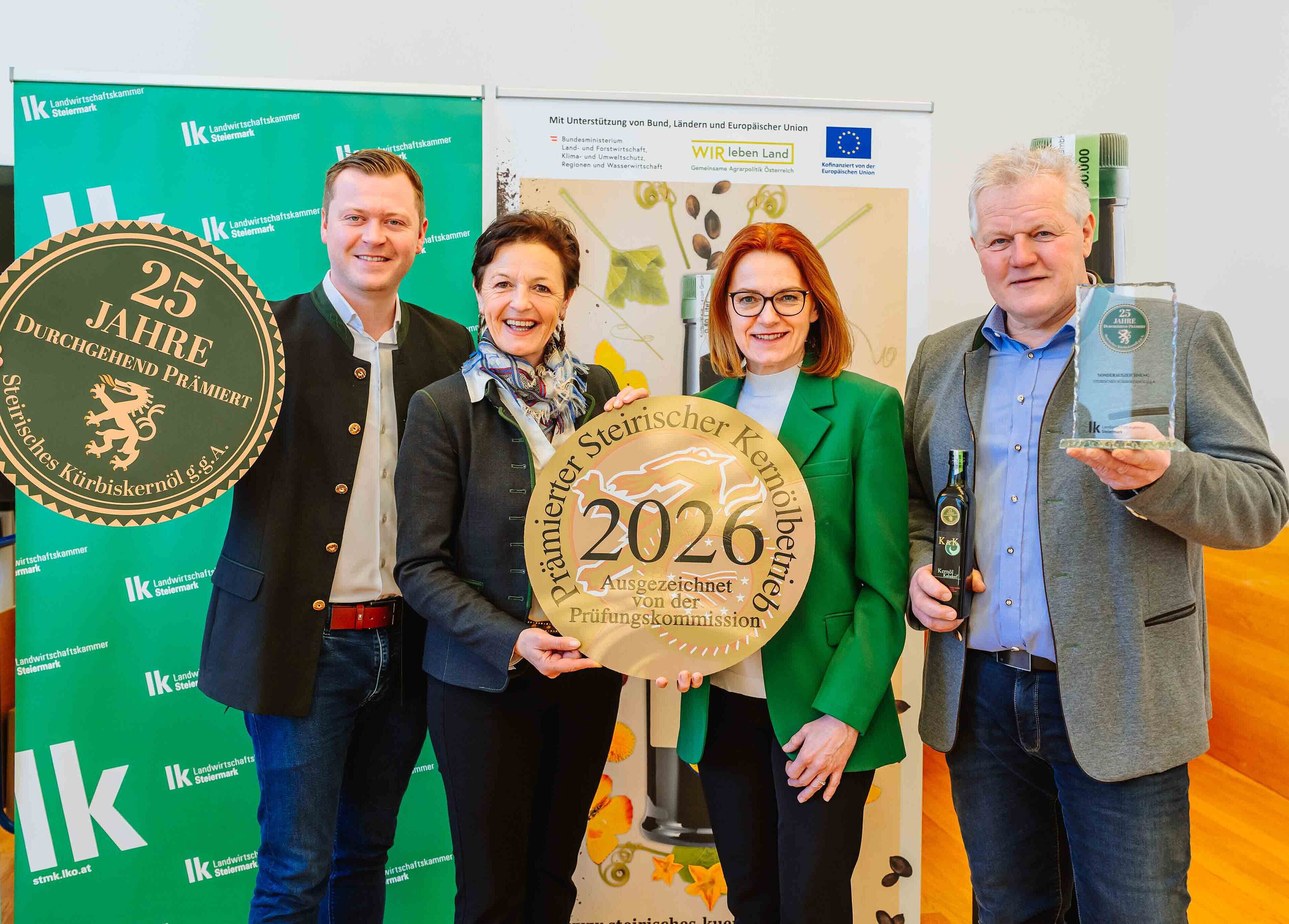 Gleich drei Kürbiskernöl-Superstars wurden bei der jüngsten Prämierung der besten Kernöle aus der Steiermark gekürt; sie hatten seit 25 Jahren bei der anonymen Ölverkostung durchgehend jeweils Gold gewonnen.