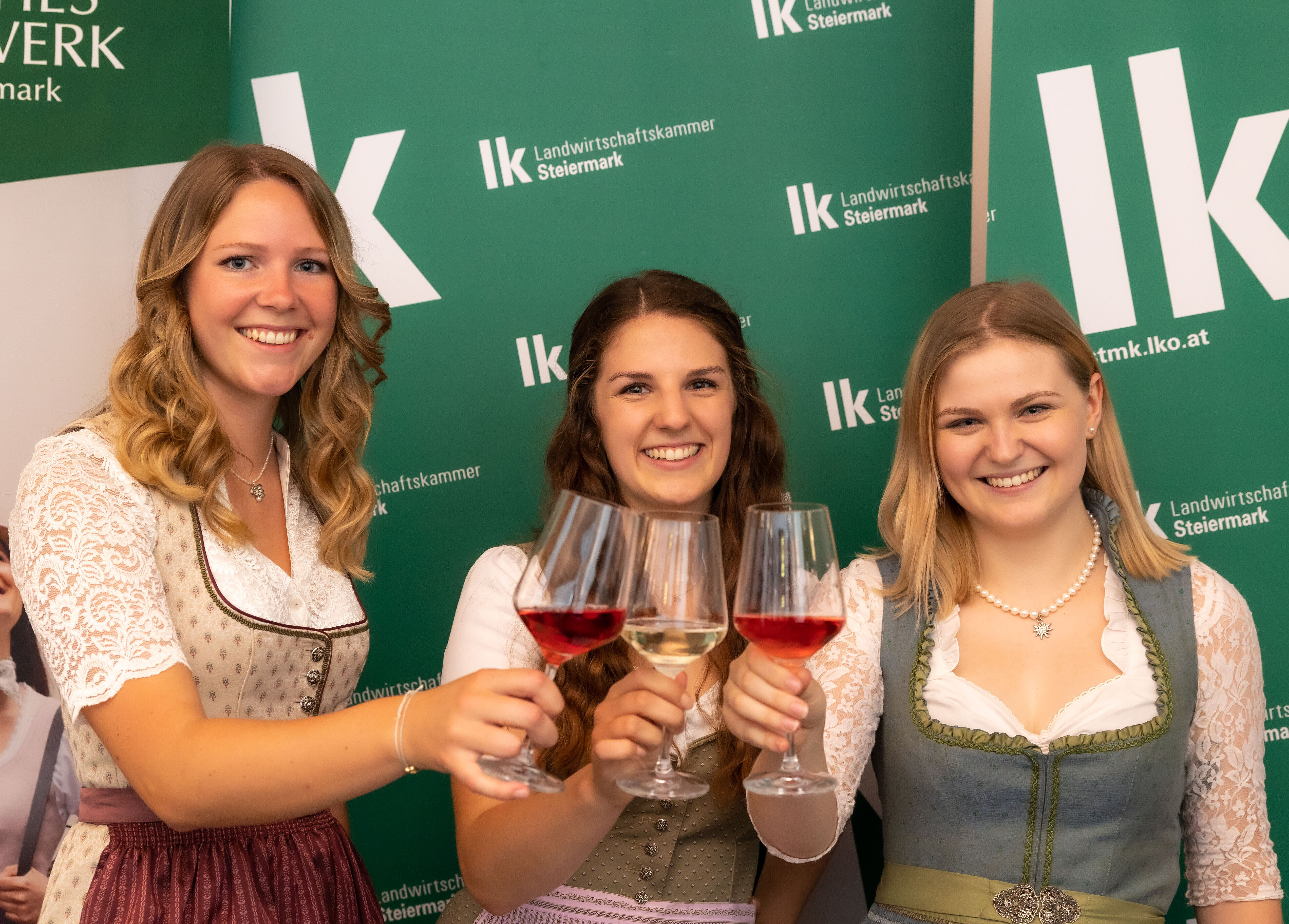 Turnusmäßger Wechsel: Die Steiermark hat drei neue Weinhoheiten: Als neue Weinkönigin und Nachfolgerin von Katrin Dokter fungiert künftig Sophie I. Friedrich. Ihre Weinprinzessinnen sind Katrin Strohmaier und Marlene Prugmaier.
