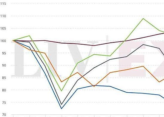 Der Liv-ex Weinhandesindex der gefragtesten Weine der Welt ermittelt deren Durchschnittspreise im globalen Handel.