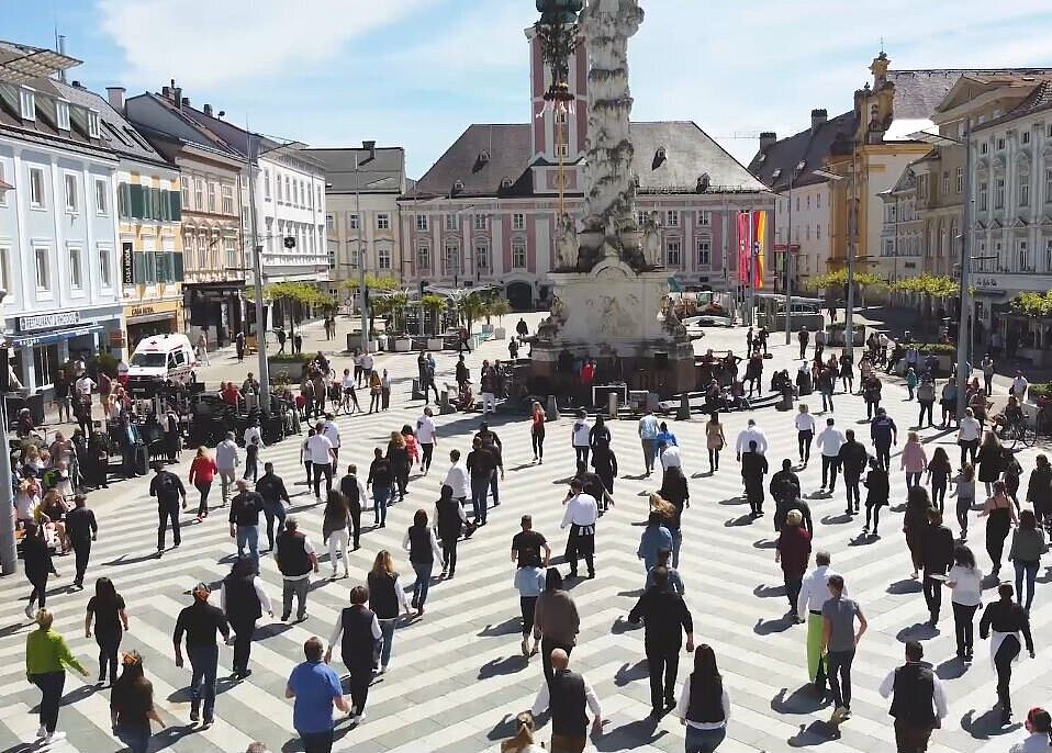 Mit einem Freudentanz haben 140 Gastwirte und Mitarbeiter der Landeshauptstadt St. Pölten die Wiederöffnung der Gastronomie am 19. Mai 2021 gefeiert. Das Video davon schießt wie eine Rakete durchs Netz.