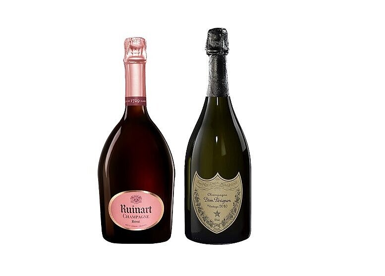 Zwei Top-Champagner in ihrer jeweiligen Liga, passend nicht nur zu Lockdown, Fasching und Valentinstag im sprudelnden Vinaria Vorteilsangebot für Leser: Dom Pérignon Vintage 2010 und Ruinart Rosé.
